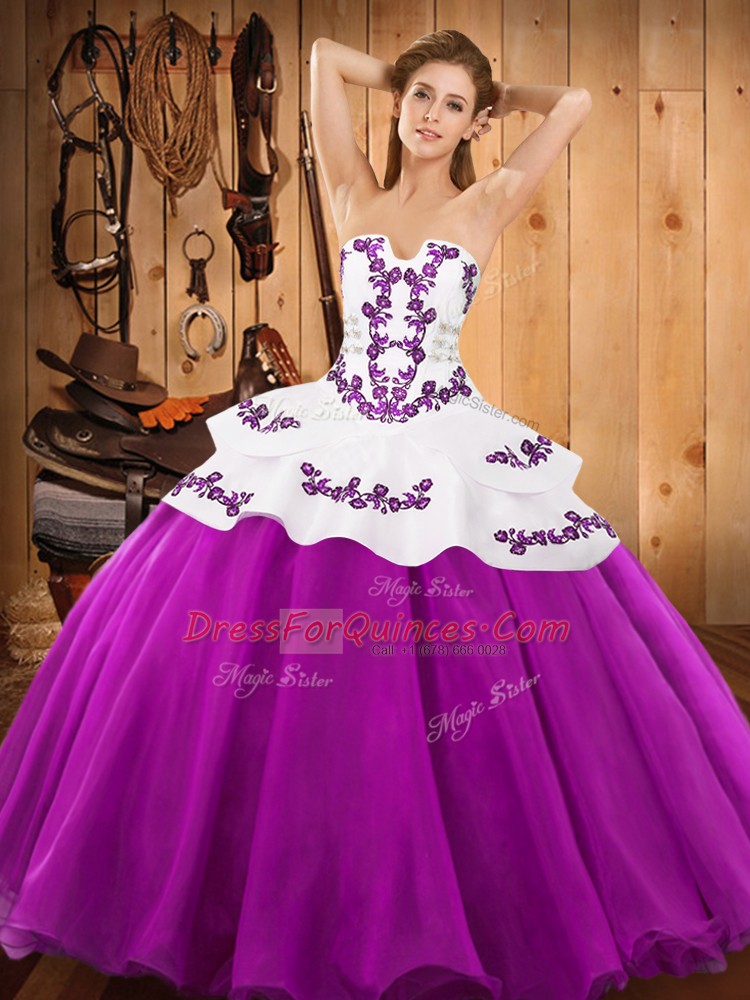 Ball Gowns 15th Birthday Dress Fuchsia Strapless Satin and Organza Sleeveless Floor Length Lace Up