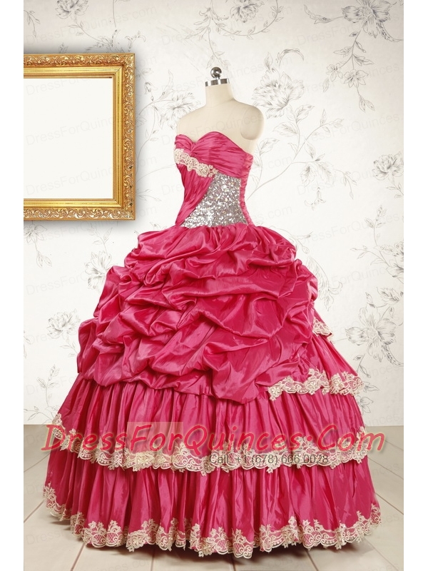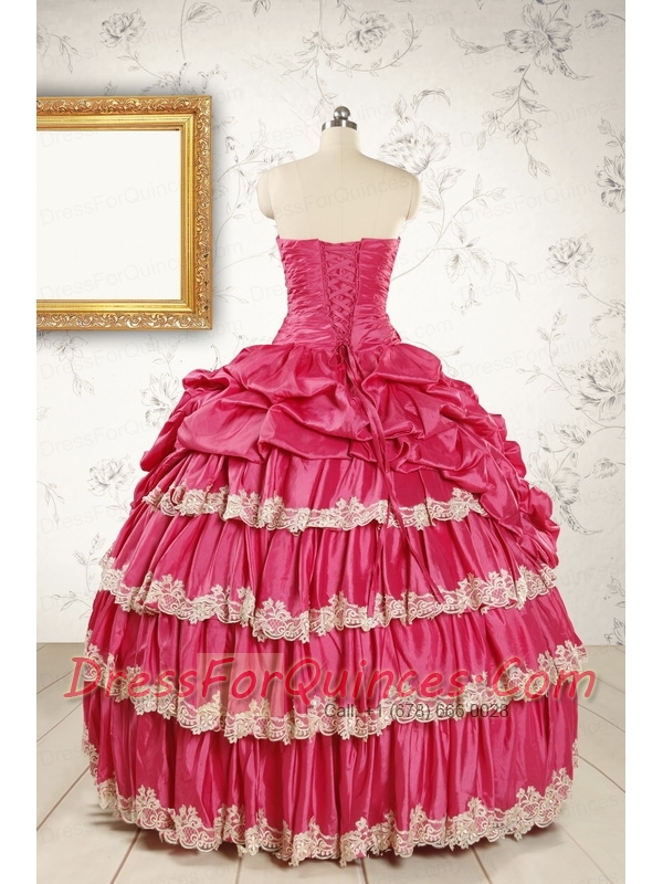 Cheap Appliques Sweet 15 Dresses in Coral Red