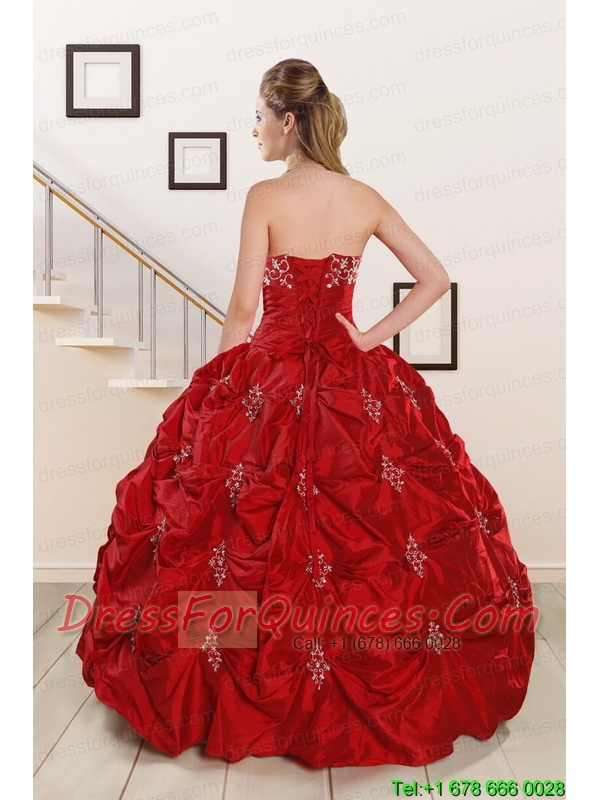 Cheap Sweetheart Appiques and Beading 2015 Quinceanera Dresses in Red