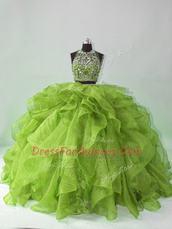 Comfortable Green Sleeveless Organza Brush Train Backless Sweet 16 Dress for Sweet 16 and Quinceanera