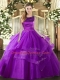 Eggplant Purple Ball Gowns Ruffled Layers Sweet 16 Dresses Lace Up Tulle Sleeveless Floor Length