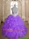 Fashionable Big Puffy Beading and Ruffles Quinceanera Dress in Purple