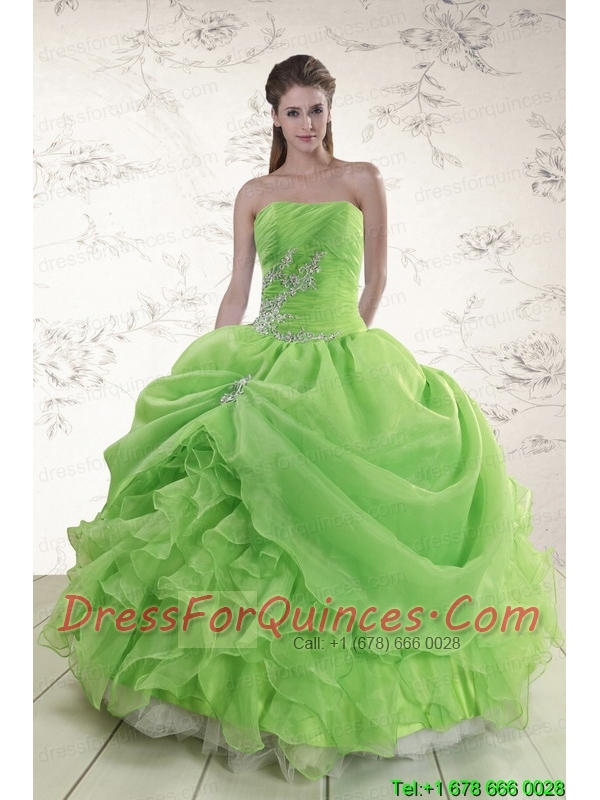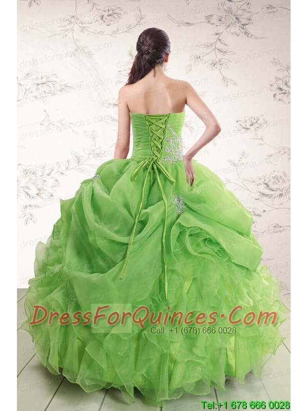 Fast Delivery Strapless Appliques Quinceanera Dresses in Spring Green