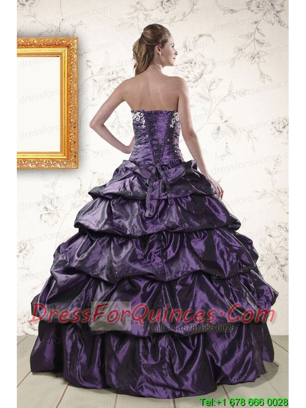 Fast Delivery Sweetheart Purple Sweet 15 Dresses with Appliques for 2015