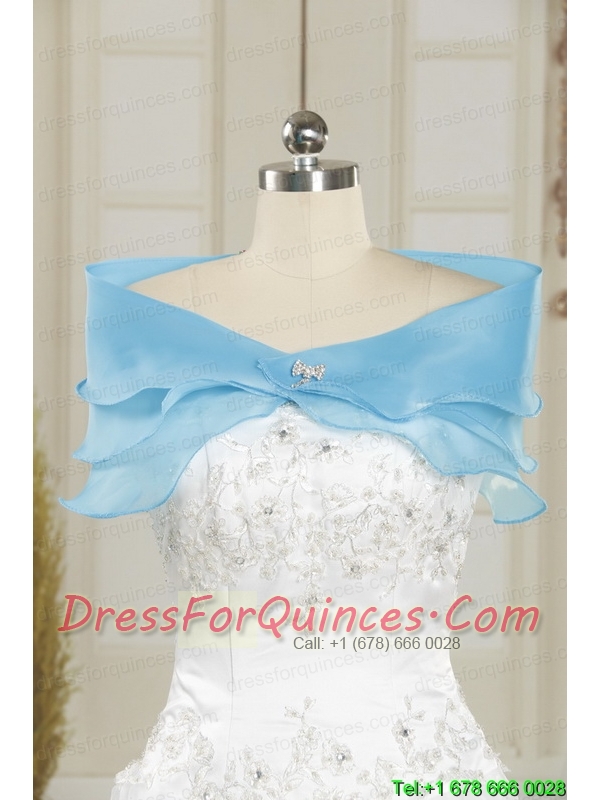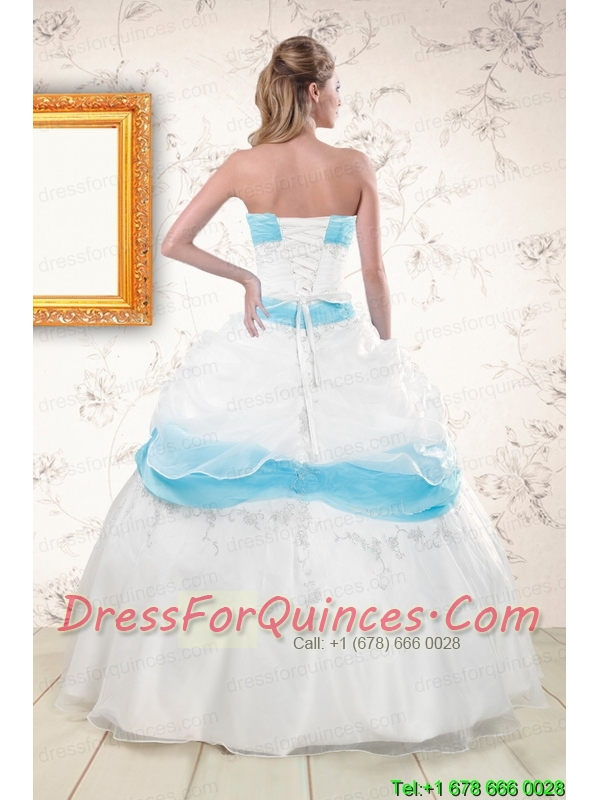 Fast Delivery White and Baby Blue Ball Gown Quinceanera Dress for 2015
