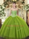 Free and Easy Sleeveless Floor Length Beading Lace Up Quinceanera Gown with Olive Green