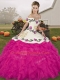 Fuchsia Off The Shoulder Lace Up Embroidery and Ruffles Vestidos de Quinceanera Sleeveless