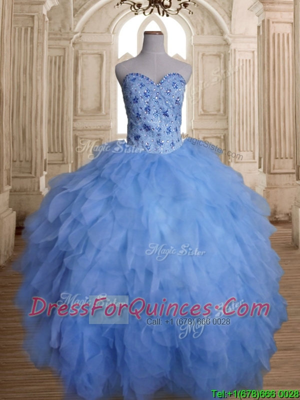 Gorgeous Tulle Beaded and Ruffled Sweet 16 Dress with Puffy Skirt