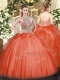 Halter Top Sleeveless Lace Up Sweet 16 Quinceanera Dress Red Tulle