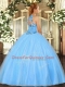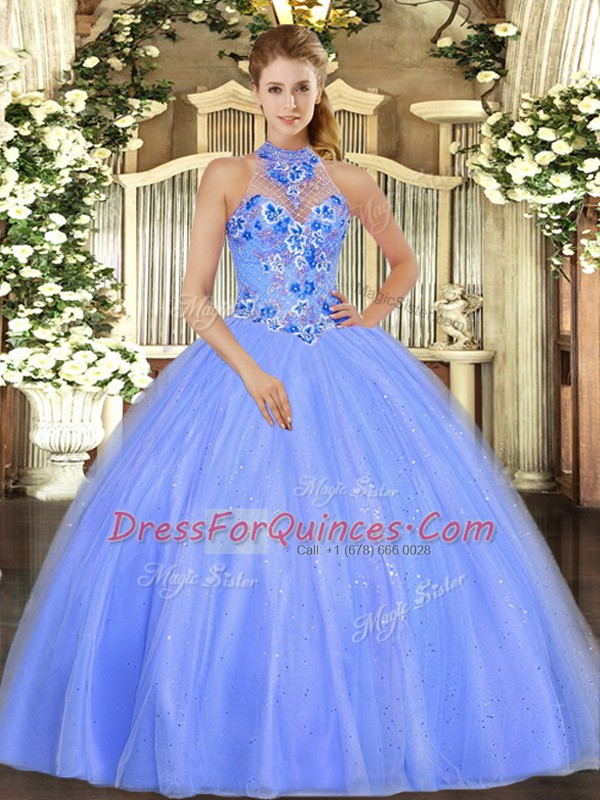 Halter Top Sleeveless Tulle Quinceanera Gown Embroidery Lace Up