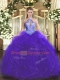 Latest Ruffles and Sequins 15 Quinceanera Dress Purple Lace Up Sleeveless Floor Length