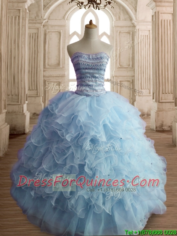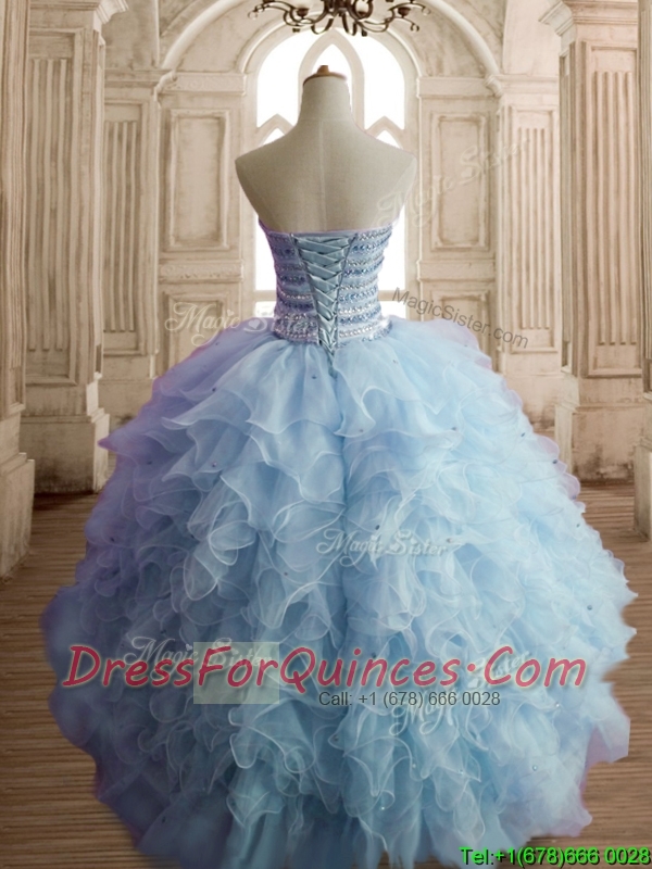 Lovely Light Blue Big Puffy Quinceanera Dress with Beading and Ruffles