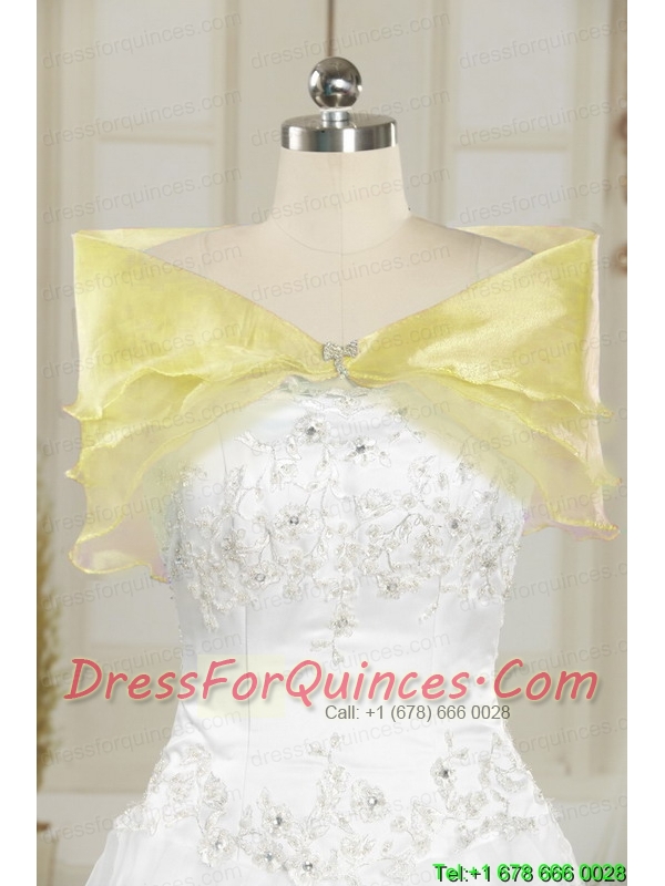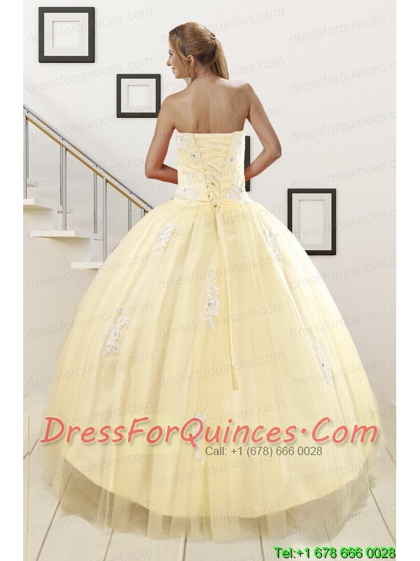 Luxurious Light Yellow Sweet 16 Dresses with White Appliques