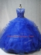 Modern Royal Blue Tulle Lace Up Sweet 16 Dresses Sleeveless Brush Train Beading and Ruffles