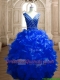 Modest Beaded and Ruffled Deep V Neckline Quinceanera Dress in Royal Blue