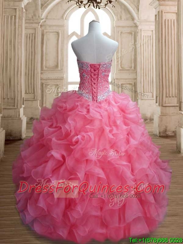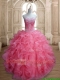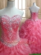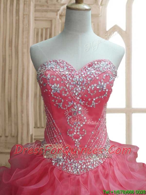 New Style Beaded and Ruffled Quinceanera Dress in Watermelon