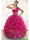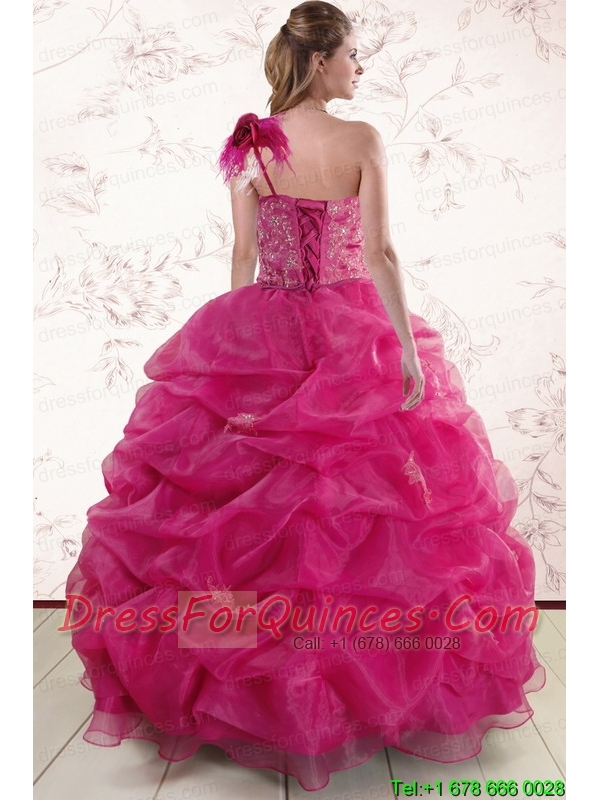 One Shoulder Appliques and Pick Ups Quinceanera Dresses in Fuchsia