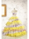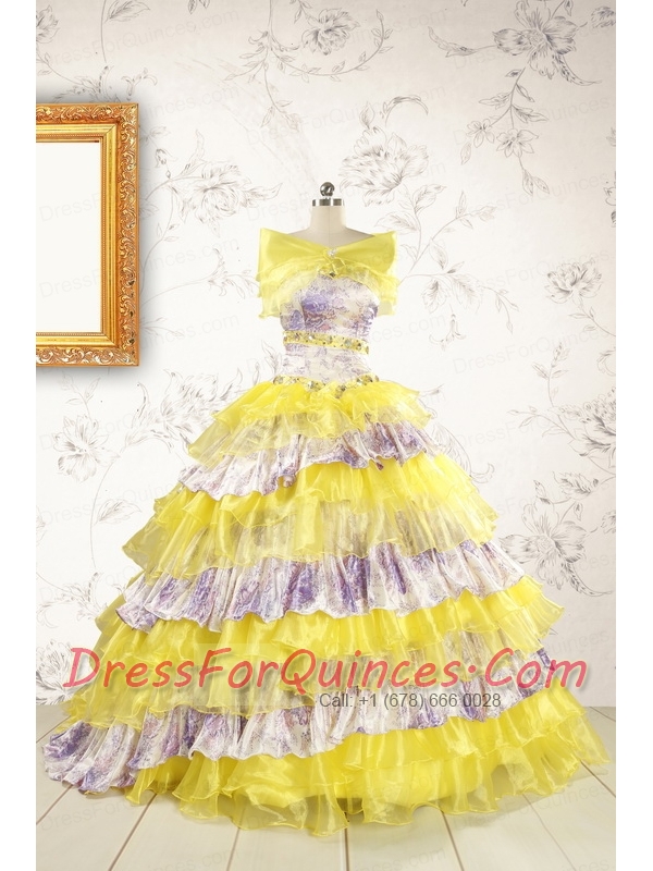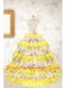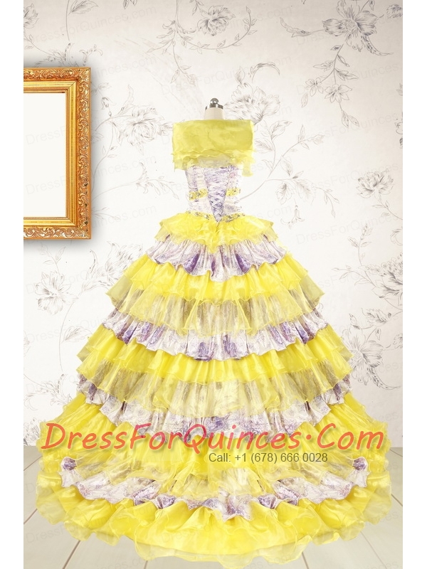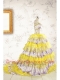 Popular Beading Yellow Sweet 15 Dresses with Sweep Train