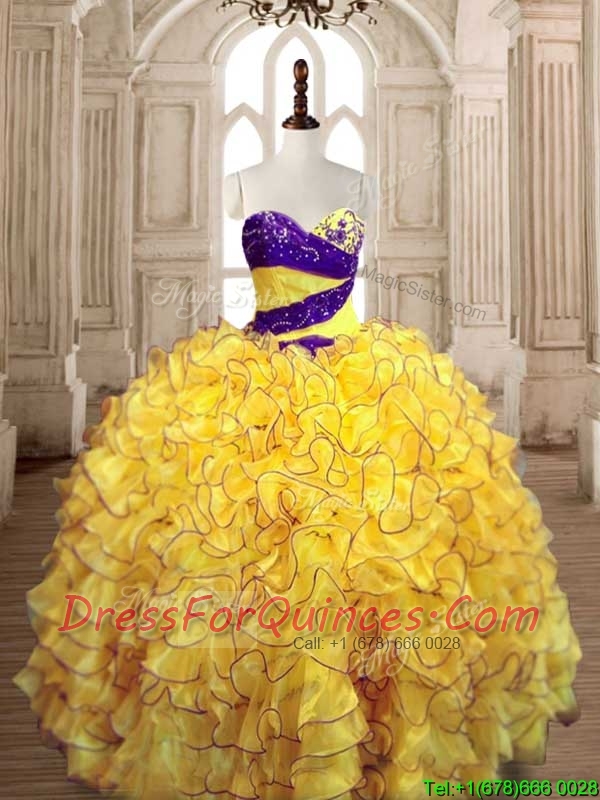 Pretty Ball Gown Yellow Quinceanera Dress with Beading and Ruffles
