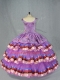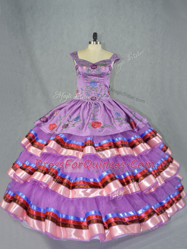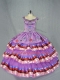Purple Sleeveless Embroidery and Ruffled Layers Floor Length Quinceanera Dress