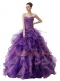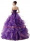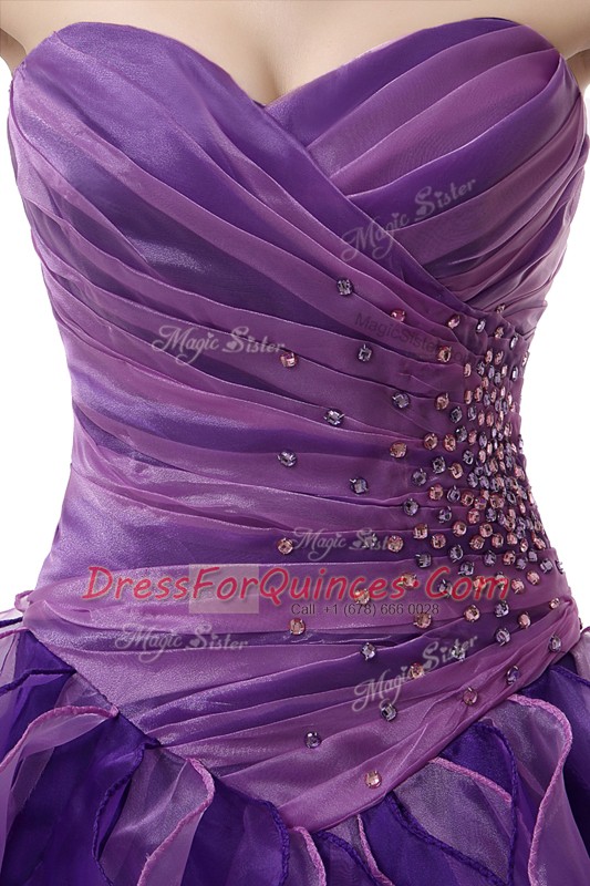 Purple Sweetheart Lace Up Beading and Ruffles and Ruching 15th Birthday Dress Sleeveless