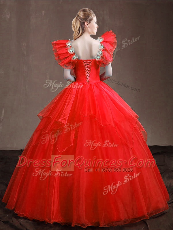 Red Sweetheart Neckline Appliques and Ruffles Vestidos de Quinceanera Sleeveless Lace Up