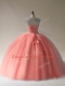 Romantic Ball Gowns Vestidos de Quinceanera Peach Scoop Tulle Sleeveless Floor Length Lace Up