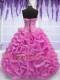 Rose Pink Ball Gowns Strapless Sleeveless Organza Floor Length Lace Up Beading Quinceanera Dresses