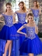 Royal Blue Tulle Lace Up Off The Shoulder Sleeveless Sweet 16 Dresses Brush Train Beading