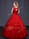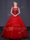 Scoop Red Sleeveless Tulle Lace Up Quince Ball Gowns for Military Ball and Sweet 16 and Quinceanera