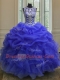 Scoop Sleeveless Organza Quinceanera Dresses Beading and Ruffles Lace Up