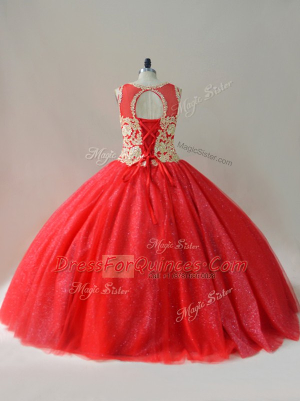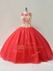 Scoop Sleeveless Tulle Ball Gown Prom Dress Beading Lace Up
