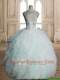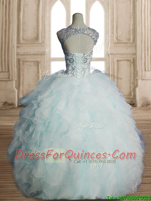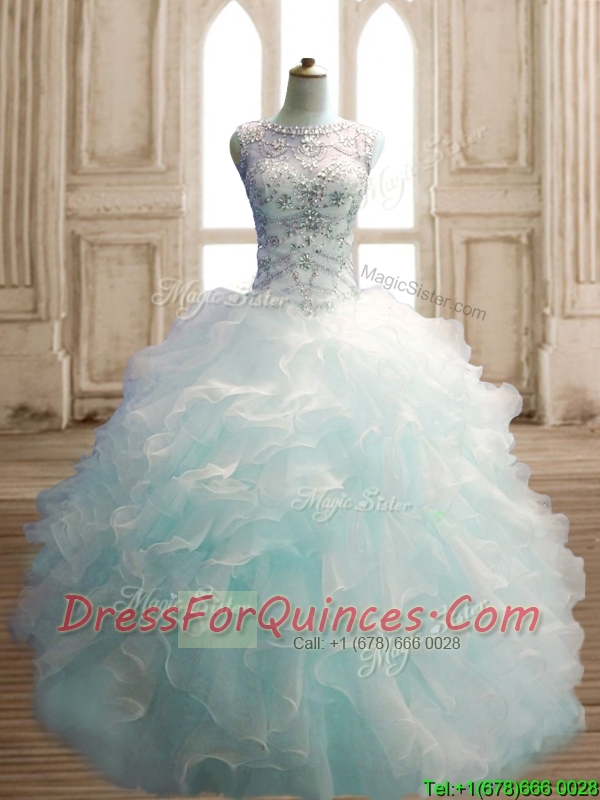 See Through Scoop Light Blue Quinceanera Dress with Beading and Ruffles
