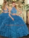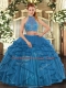 Sleeveless Beading and Ruffled Layers Criss Cross 15 Quinceanera Dress