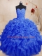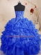 Sleeveless Floor Length Beading and Ruffles Lace Up 15 Quinceanera Dress with Royal Blue
