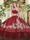 Sleeveless Tulle Floor Length Backless Quinceanera Gowns in Red with Beading and Appliques