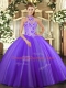 Stylish Sleeveless Floor Length Embroidery Lace Up Quinceanera Gown with Purple