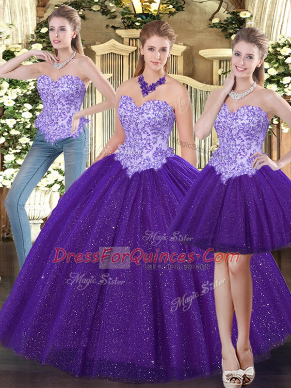Suitable Floor Length Ball Gowns Sleeveless Purple Quinceanera Dress Lace Up