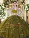 Sumptuous High-neck Sleeveless Backless Sweet 16 Quinceanera Dress Olive Green Organza