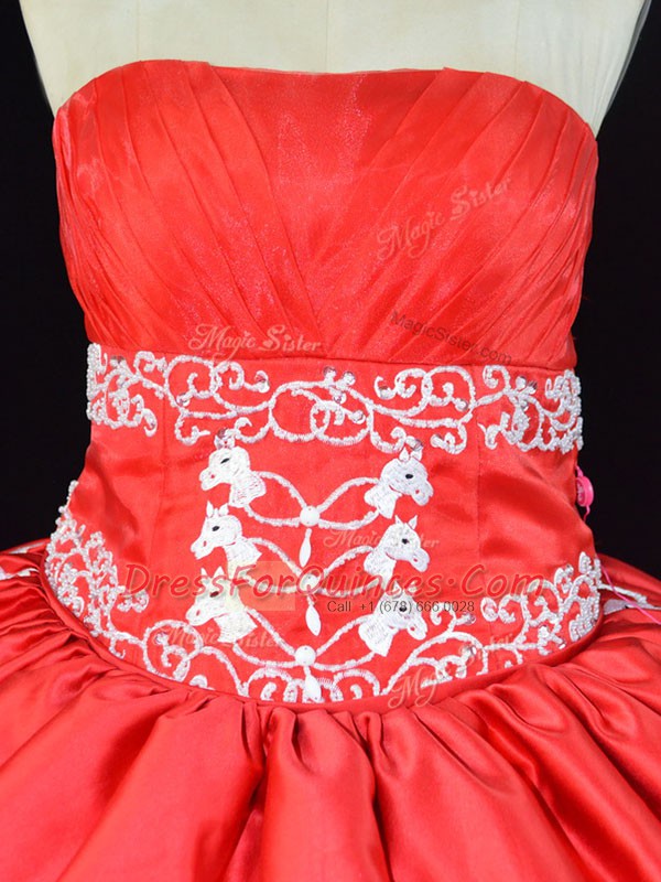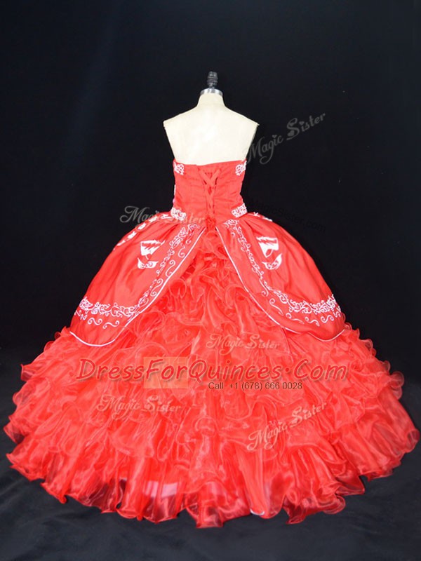 Sumptuous Sleeveless Organza Floor Length Lace Up Sweet 16 Dresses in Red with Embroidery and Ruffles