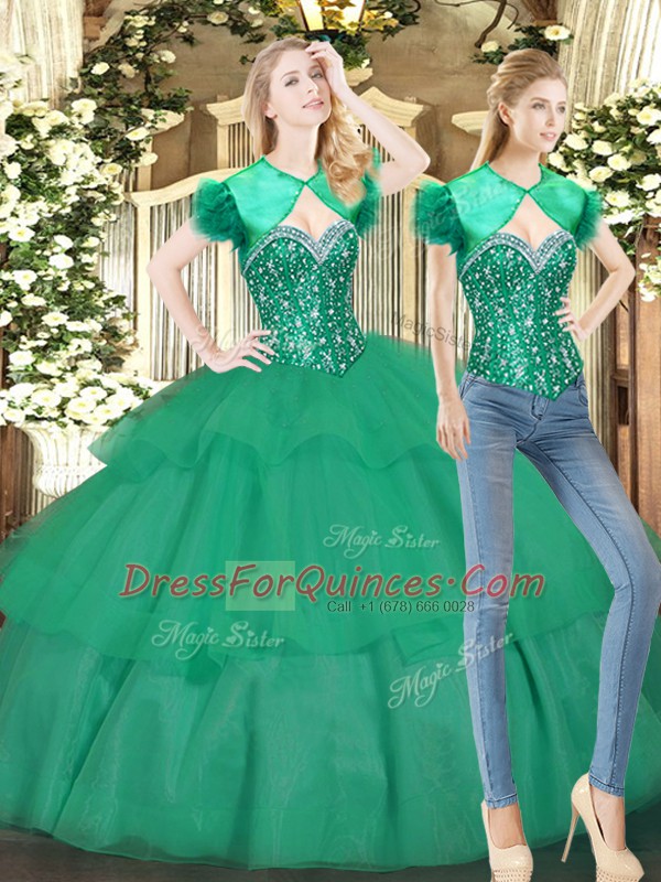 Sweet Beading and Ruffled Layers Sweet 16 Quinceanera Dress Turquoise Lace Up Sleeveless Floor Length