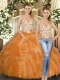 Sweet Orange Red Sleeveless Floor Length Beading and Ruffles Lace Up 15 Quinceanera Dress