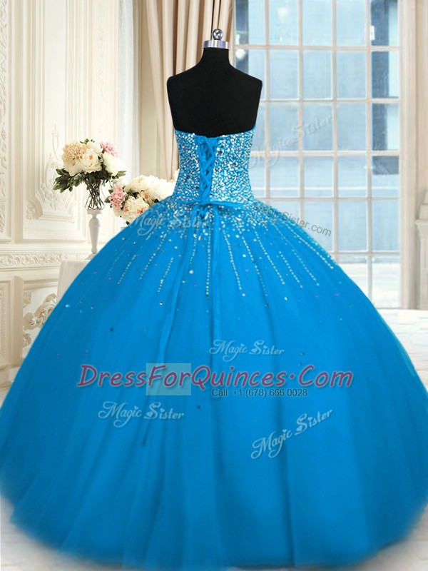Teal 15th Birthday Dress Military Ball and Sweet 16 and Quinceanera and For with Beading and Ruffles Sweetheart Sleeveless Lace Up