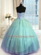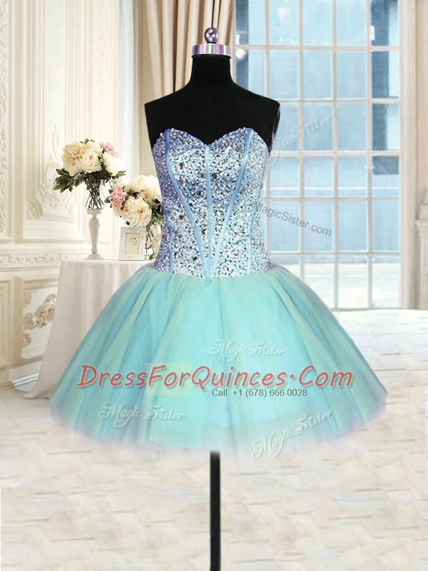 Three Piece Blue Lace Up Quince Ball Gowns Beading Sleeveless Floor Length
