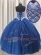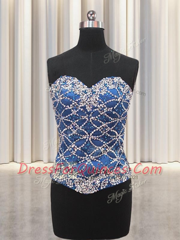 Three Piece Sweetheart Sleeveless Quinceanera Dresses Floor Length Beading and Sequins Blue Tulle