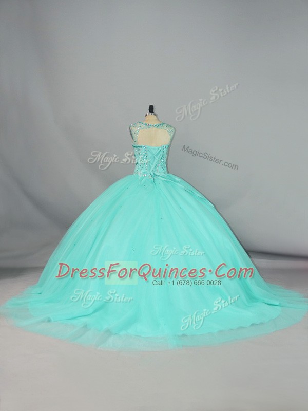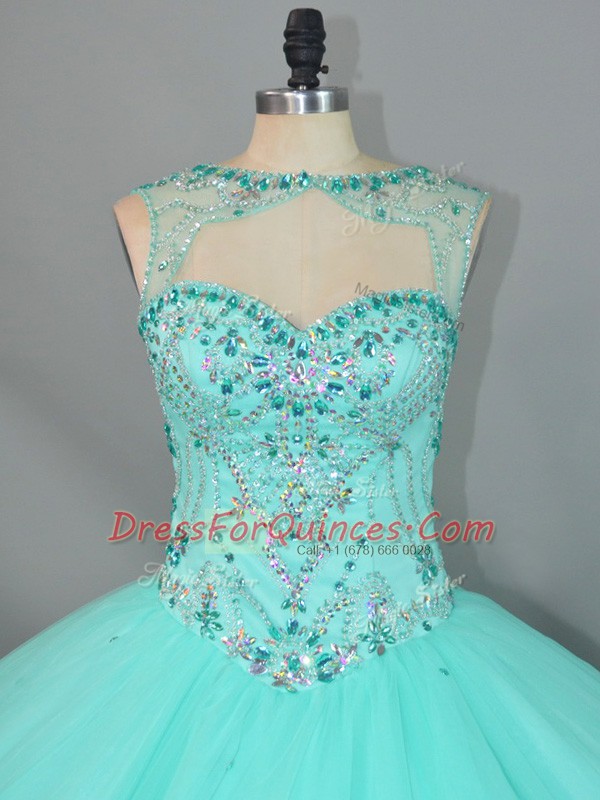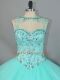 Top Selling Beading 15 Quinceanera Dress Apple Green Lace Up Sleeveless Brush Train