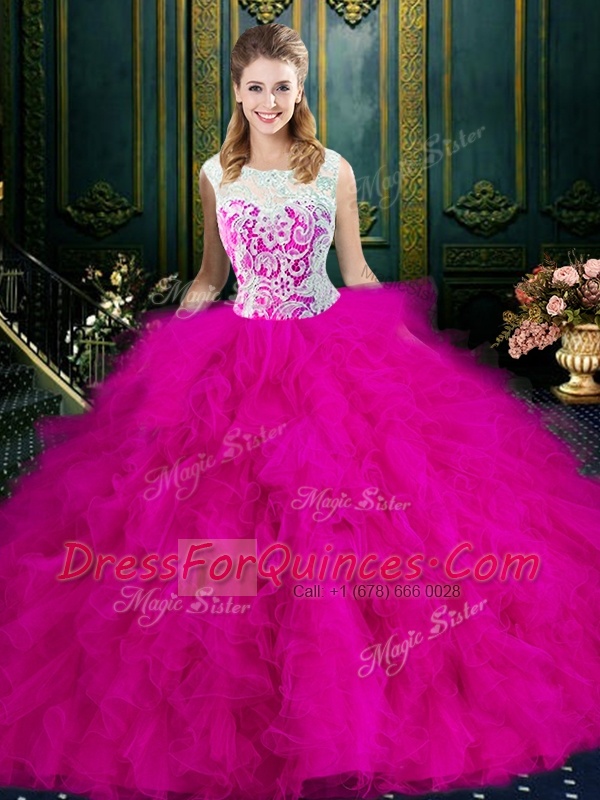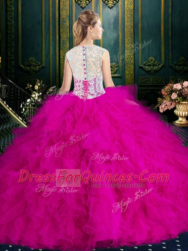 Traditional Scoop Sleeveless Lace and Ruffles Zipper Sweet 16 Dress