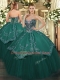 Trendy Dark Green Taffeta and Tulle Lace Up Ball Gown Prom Dress Sleeveless Floor Length Beading and Embroidery