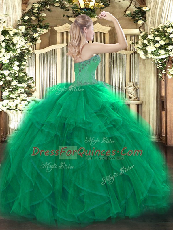 Trendy Green Sleeveless Organza Lace Up Ball Gown Prom Dress for Sweet 16 and Quinceanera