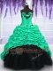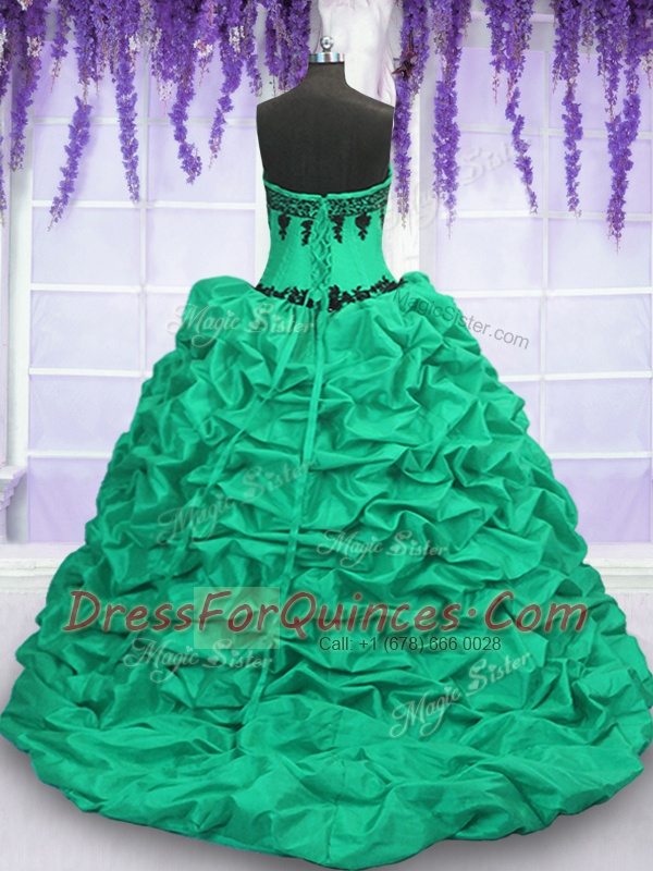 Turquoise Sleeveless With Train Appliques and Ruffles and Pick Ups Lace Up Sweet 16 Quinceanera Dress